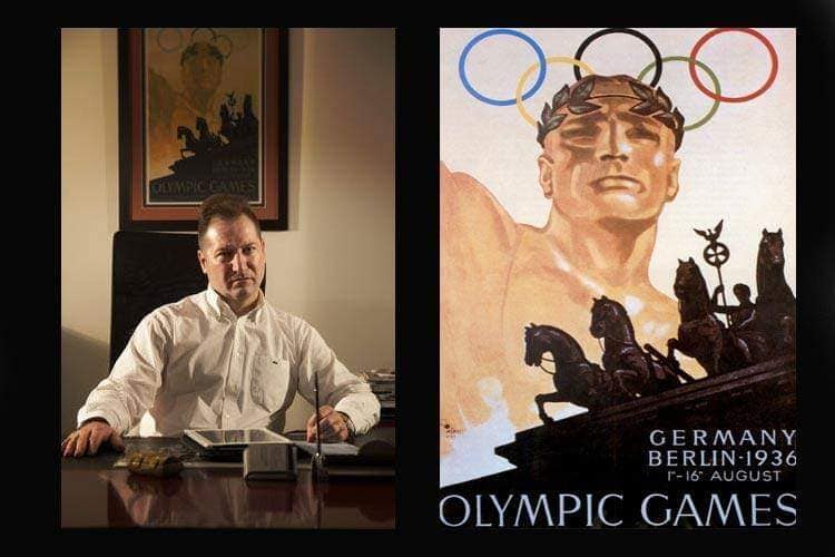 Και δεν φτάνει που θα κονομήσουν αλλά κάνουν τακίμι με ένα… Ναζί, φασισταριό τελειωμένο… Διότι ο Νταβέλης ο βιομήχανος που πίνει το αίμα του εργάτη, μπορεί να άνοιξε καμιά 200ρια θέσεις εργασίας (μόνο στο εργοστάσιο του) και θα φέρει στην Ελλαδίτσα φράγκα, δηλαδή σε όλους μας, αλλά στο γραφείο του έχει μόστρα μια συλλεκτική (“κι εγώ θα την είχα αν την… είχα) αφίσα των Ολυμπιακών Αγώνων του Βερολίνου του 1936!